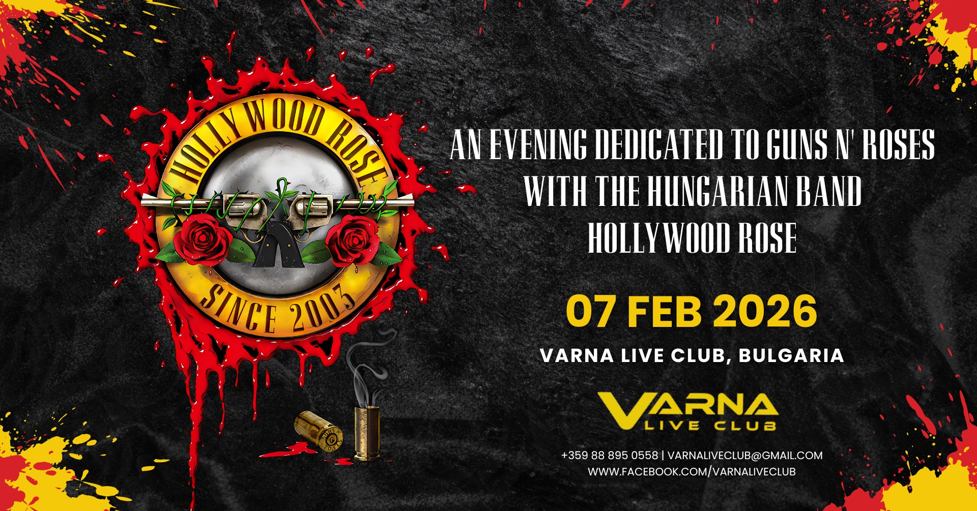 Не пропускай голямото рок събитие във Варна през февруари! Вечер, посветена на Guns N' Roses с участието на унгарската група Hollywood Rose.