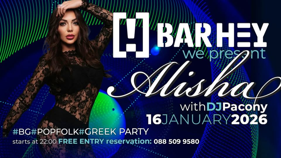 Заповядайте в Bar Hey на 16 януари от 22:00 часа и се насладете на уникалния глас на Alisha в компанията на DJ Pacony!