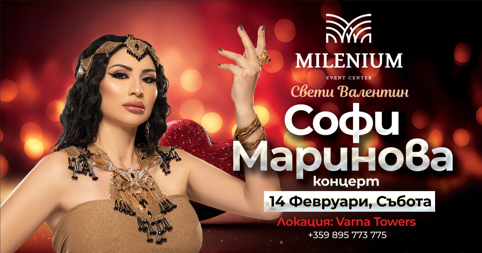Софи Маринова ♛ Концерт ♛ Свети Валентин / 14.02 За контакти и резервации: 0895 773 775 За резервации онлайн: https://bit.ly/3gfGeBO Локация: бул. Владислав Варненчик 256, Варна (вход от страната на бензиностанцията)