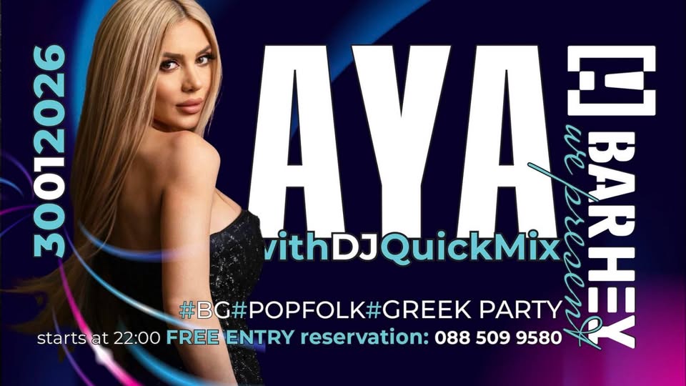 Заповядайте в Bar Hey на 30 януари от 22:00 часа и се насладете на уникалния глас на AYA в компанията на DJ QuickMix!