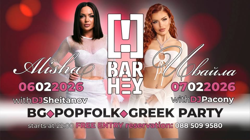Елате на 6 и 7 февруари от 22:00 часа в Bar Hey и се потопете в уникалните гласовете на Алиша & Ивайла, с участието на гост DJ-и!