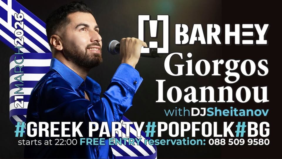 Заповядайте на 21 март от 22:00 часа в Bar Hey, за да посрещнем пролетта с най-големите гръцки хитове и гласа на Giorgos Ioannou!