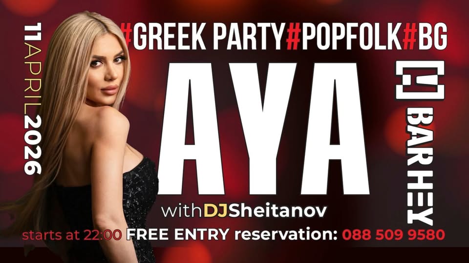 Заповядайте в Bar Hey на 11 април от 22:00 часа и се насладете на уникалния глас на AYA в компанията на DJ Sheitanov!