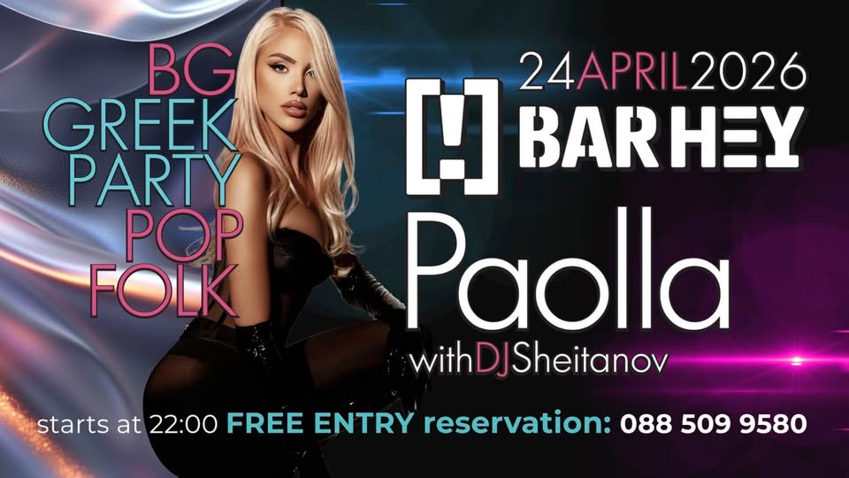 На 24 април прелестната Paolla заедно с DJ Sheitanov ще завладее Bar Hey с хитовете, които ще ви накарат да пеете, да танцувате и да се наслаждавате на момента!
