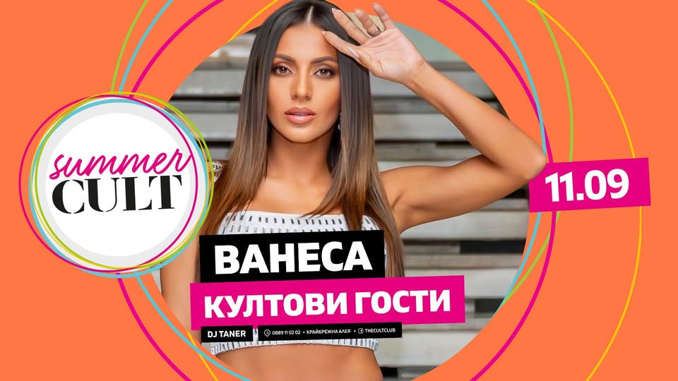 Шумна нощ ни очаква този #четвъртък. На сцената на #SummerCult се качва едно от новите лица на българския #PopFolk- #Ванеса. От летния сезон остана съвсем малко, нека го отпразнуваме заедно! Очакваме ви!