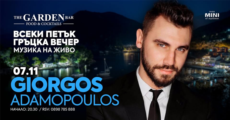 07.11 /петък/ ГРЪЦКА ВЕЧЕР С МУЗИКА НА ЖИВО с винаги усмихнатия, талантлив и пълен с енергия GIORGOS ADAMOPOULOS & bouzouki. Не е бил наш гост от пролетта и вече нямаме търпение да го видим отново на нашата сцена - 07.11 Запазете своите места отсега.