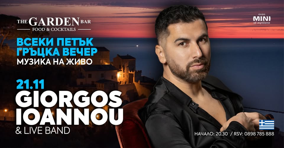 21.11 /петък/ ГРЪЦКА ВЕЧЕР С МУЗИКА НА ЖИВО с гостите ни от Гърция - чаровния GIORGOS IOANNOU и неговия бенд. Те ще се качат за първи път на нашата сцена и сме сигурни, че ще спечелят сърцата ви.
