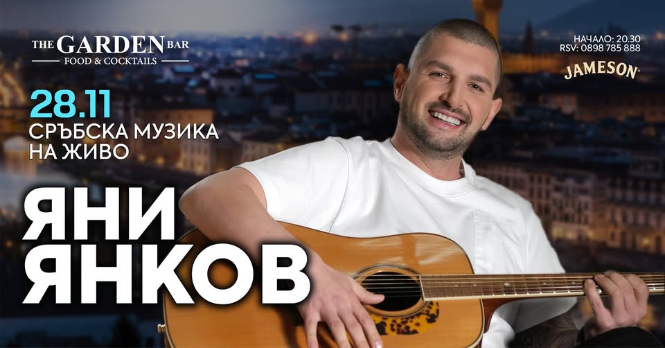 ЯНИ ЯНКОВ е изключително талантлив и знаем, че е ваш любимец - затова ще бъде на сцената на The Garden Bar на 28 ноември /петък/