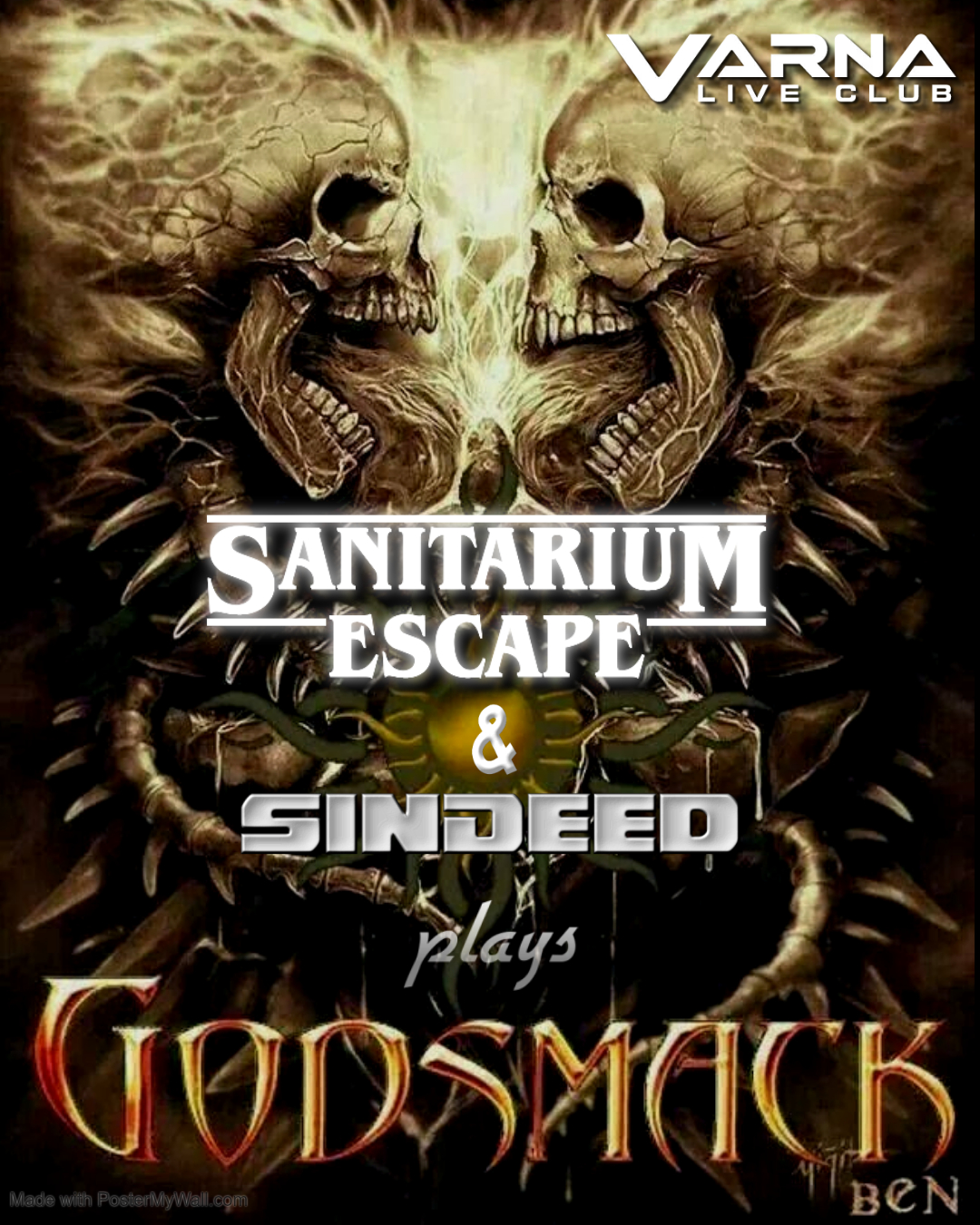 TRIBUTE TO GODSMACK SinDeed & Sanitarium Escape Live! Varna Live Club 9 януари 2026 Врати: 21:00 Начало: 22:30 Очаквайте мощен саунд, адреналин и истинско рок изживяване! Godsmack както никога досега – на живо с Sanitarium Escape!
