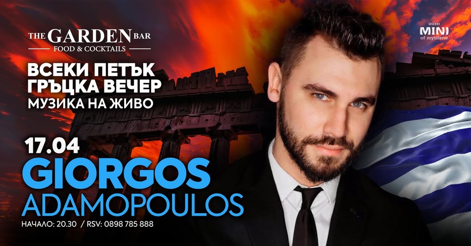 17.04 /петък/ ГРЪЦКА ВЕЧЕР С МУЗИКА НА ЖИВО с винаги усмихнатия, талантлив и пълен с енергия GIORGOS ADAMOPOULOS & bouzouki. Не е бил наш гост от януари и вече нямаме търпение да го видим отново на нашата сцена - 17.04 Запазете своите места отсега .