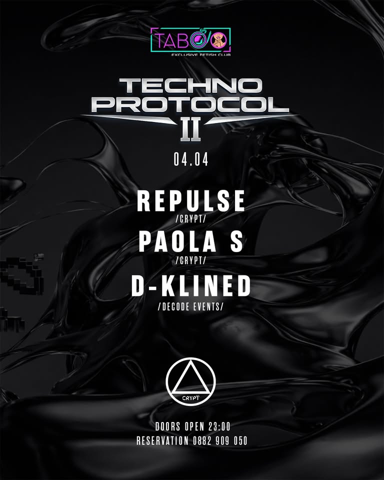 The second edition of Techno Protocol, brings a powerful collaboration between D‑KLINED, Paola S, and Repulse for a night engineered for pure, unfiltered techno energy.
