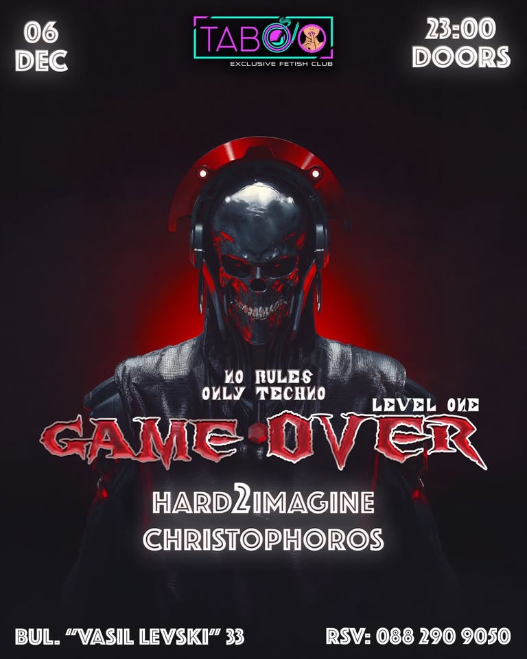 “GAME OVER -Level One” въвежда публиката в свят от minimal techno, peak time techno и плътно, ускорено techno, подредени така, че ритъмът да не позволява нито секунда почивка.