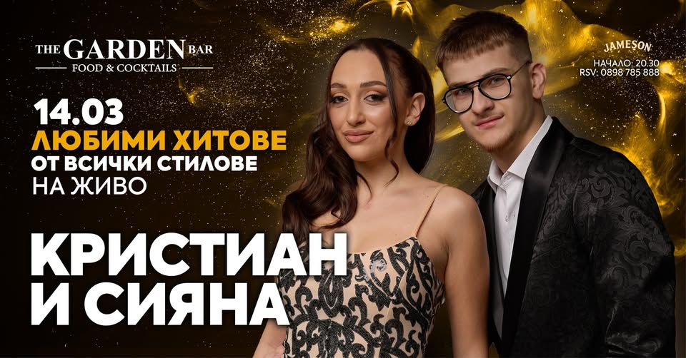 На 14.03 ви очаква МУЗИКА на ЖИВО с талантливите КРИСТИАН и СИЯНА, които ще ви забавляват с любими песни от всички стилове и от Балканите.
