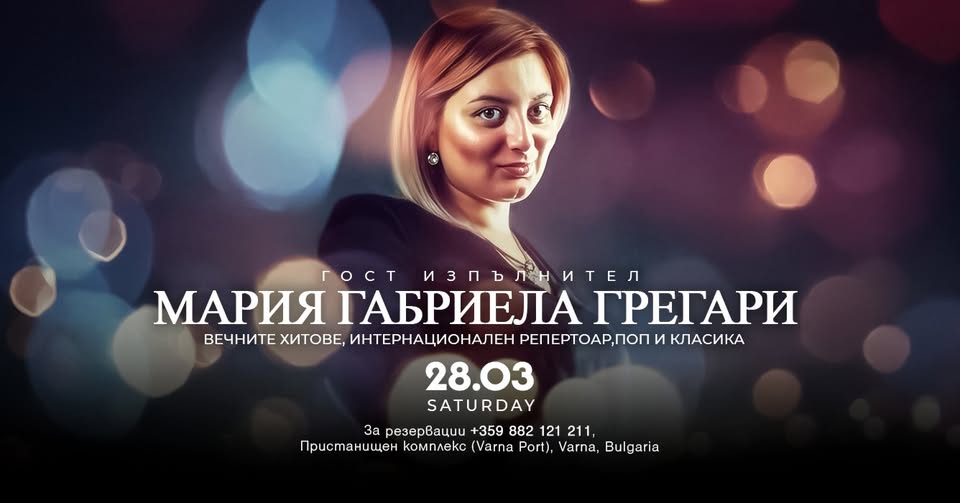 Мария Габриела Грегари – харизматичен глас и изискано присъствие, което превръща всяка вечер в истинско преживяване.
