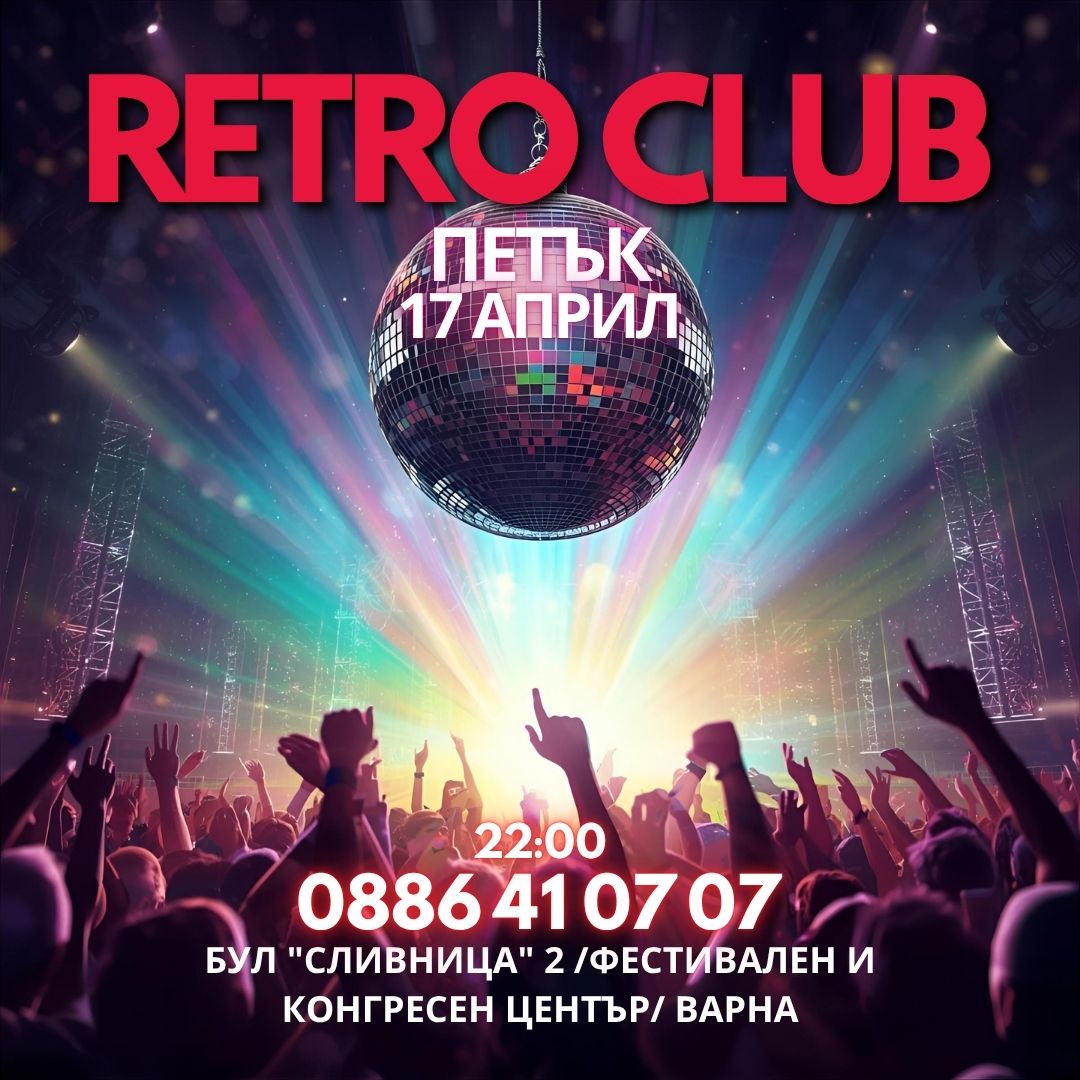 #ПЕТЪК - 17.04.2026 - #RETRO #CLUB Много усмивки, в добра компания и с най-яката жива музика! Огромна доза горещо шоу и позитивни емоции! Ще бъде весело! Отваряме в 22:00ч. RSV: 0886 41 07 07 /Фестивален комплекс/ Очакваме Ви!